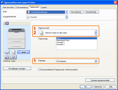 Verwendet für das vordere und hintere Deckblatt anderes Papier als für den Hauptteil des Ausdrucks.